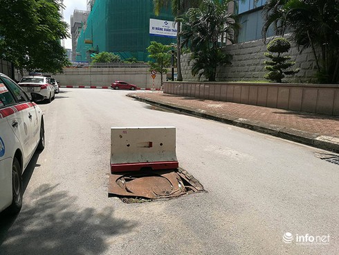 Một xe ô tô lọt xuống "bẫy". |