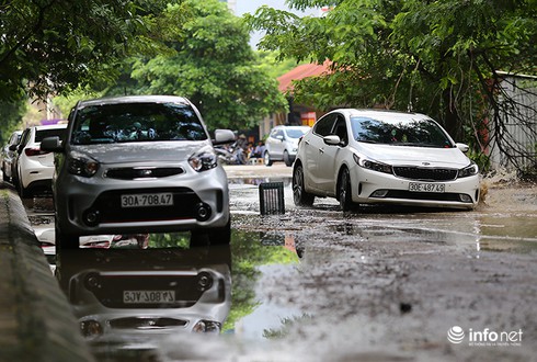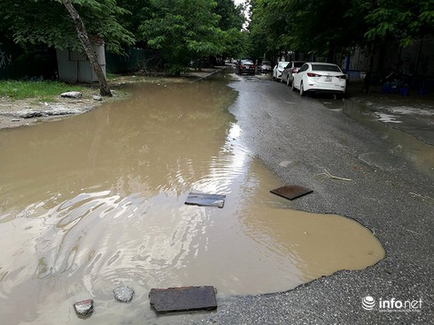 Ghi nhận của phóng viên tại đây vào trưa ngày 31/8 cho thấy, đoạn đường mặt sau trường PTTH Hà Nội Amsterdam (ngõ 115 Trần Duy Hưng) vẫn bị ngập trong nước mặc dù trời mưa từ hôm trước. Người dân đã phải để những cành cây, hộp xốp tại những hố sâu để cảnh báo người đi đường.