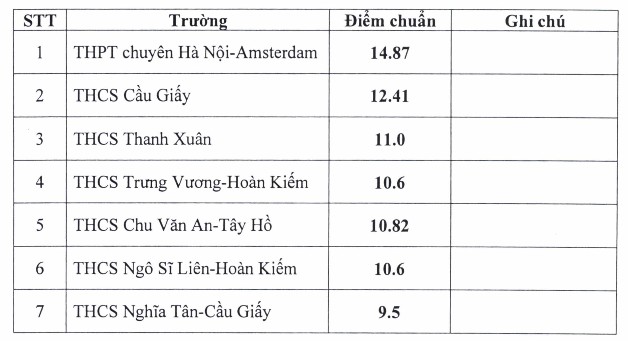 Điểm chuẩn trúng tuyển bổ sung vào lớp 6 trường THPT chuyên Hà Nội-Amsterdam là 17 điểm.
