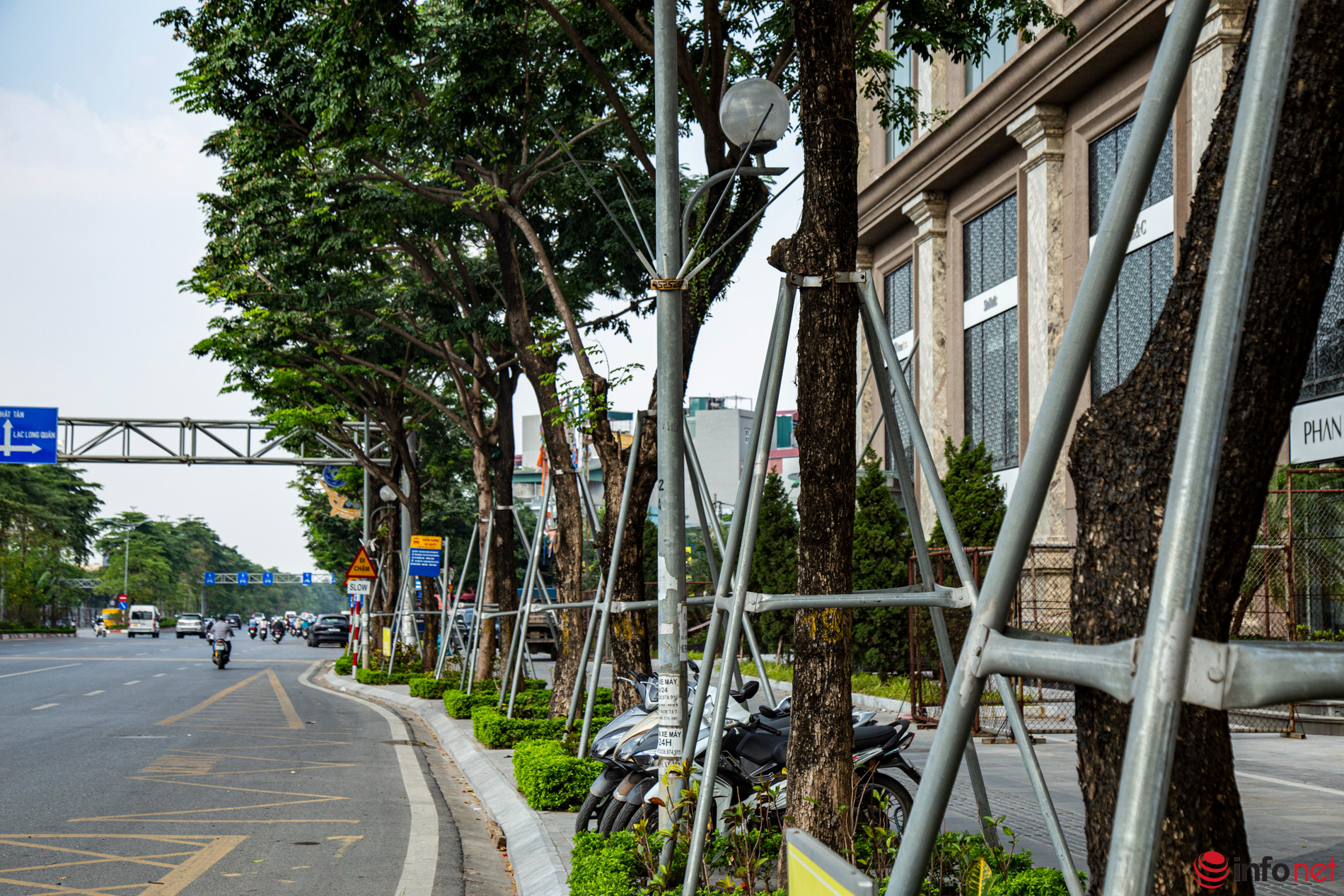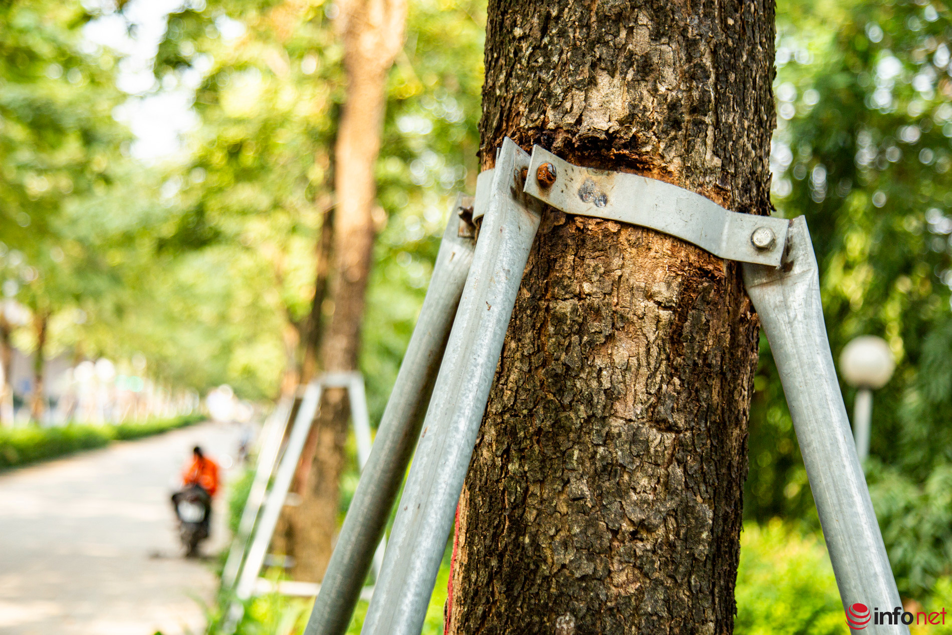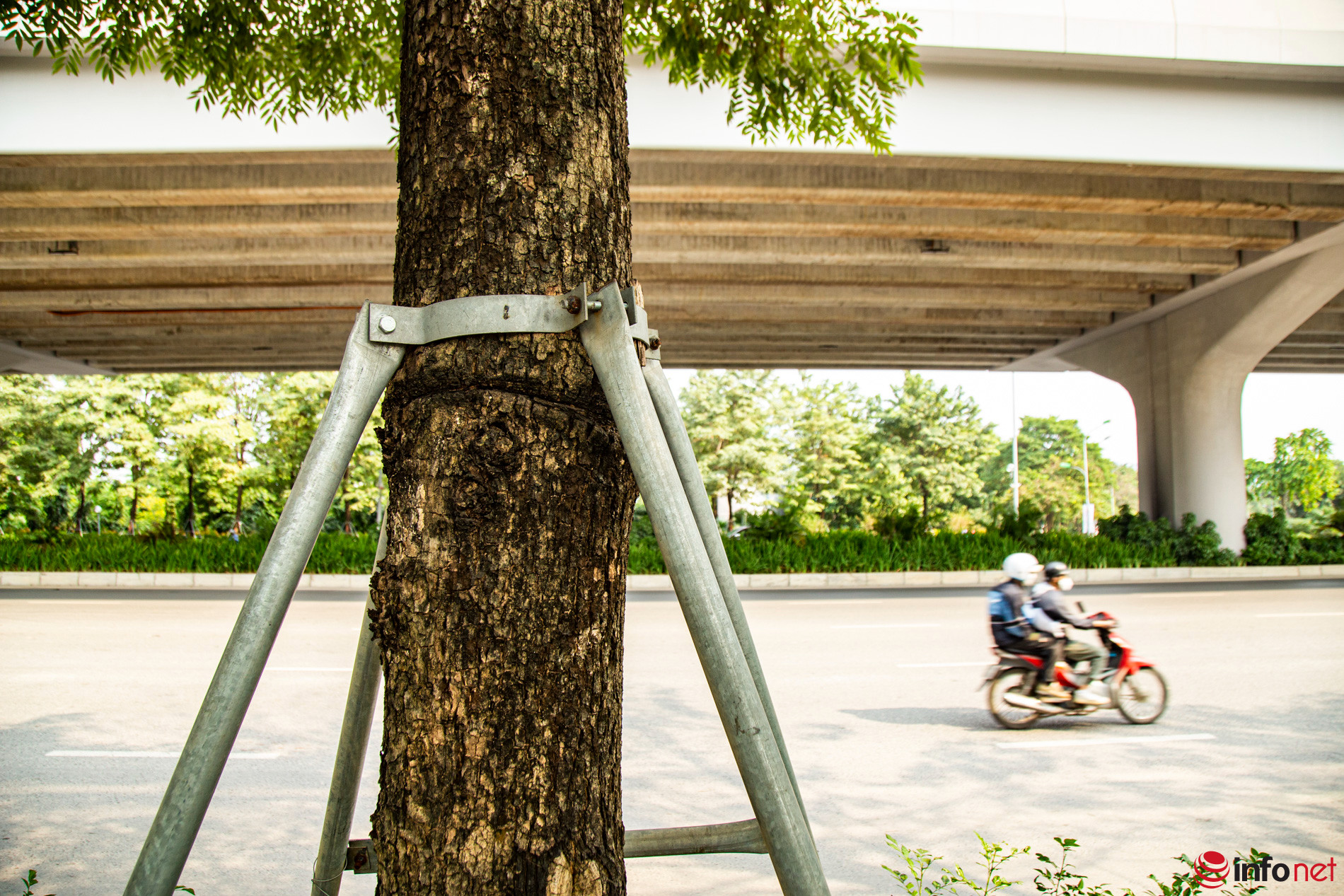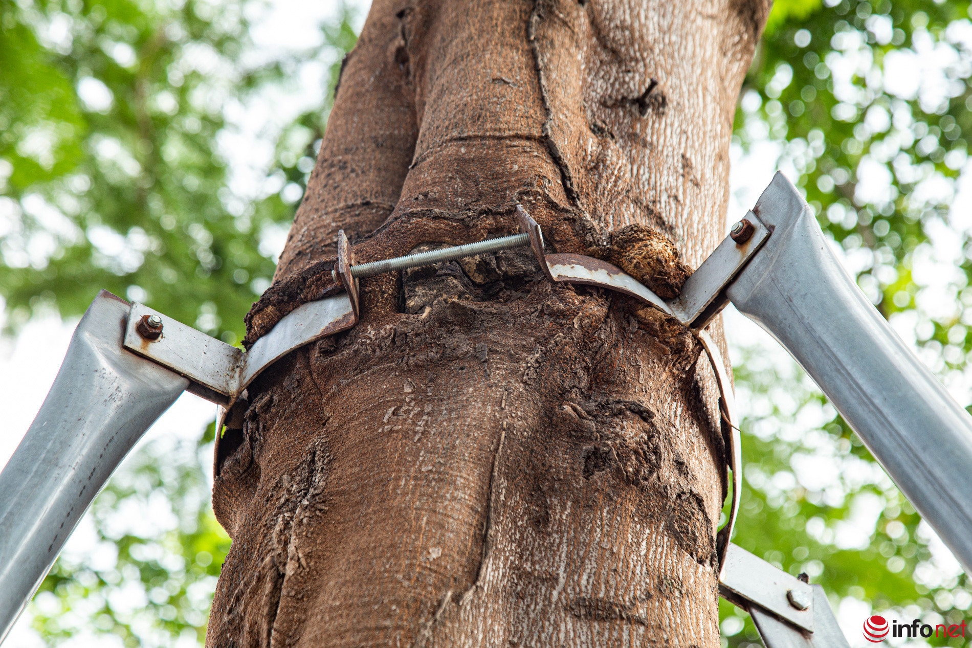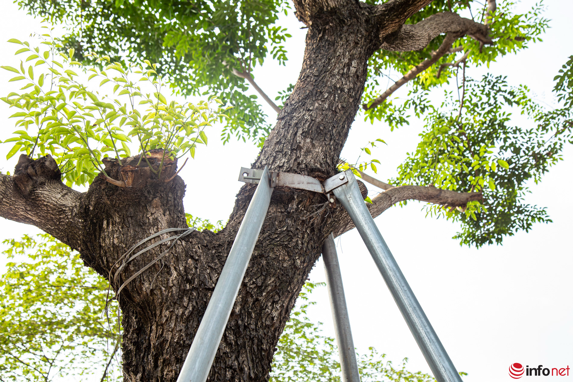 Theo lãnh đạo Sở Xây dựng Hà Nội, ngay khi tiếp nhận thông tin, lãnh đạo Sở đã lập tức chỉ đạo các đơn vị duy trì, quản lý cây xanh kiểm tra, tiến hành nới lỏng hoặc tháo bỏ các bộ gông, khung sắt vốn có chức năng chống đỡ cây. Đối với cây xanh đã đủ thời gian chống đỡ, các đơn vị sẽ tiến hành tháo bỏ khung, chuyển sang những cây xanh khác nếu cần.