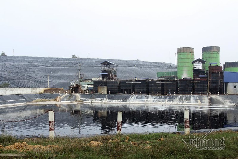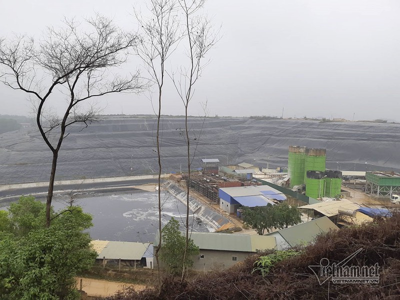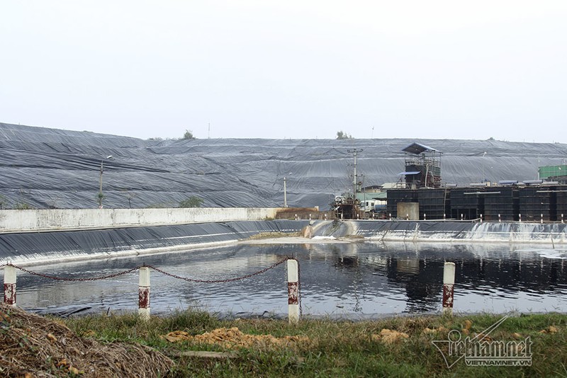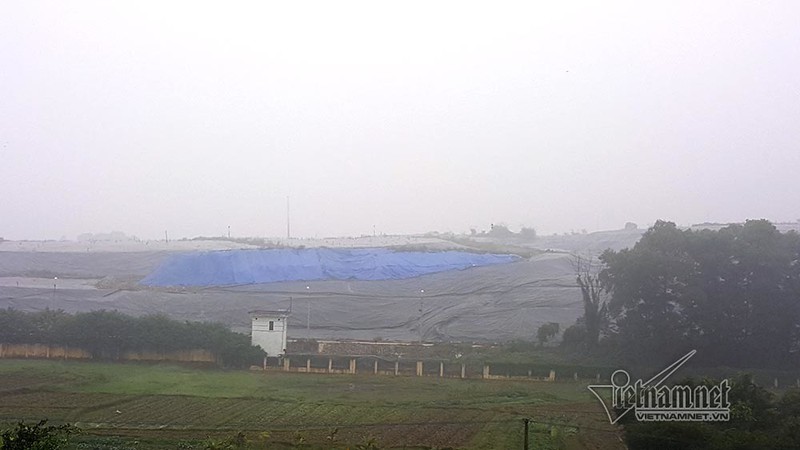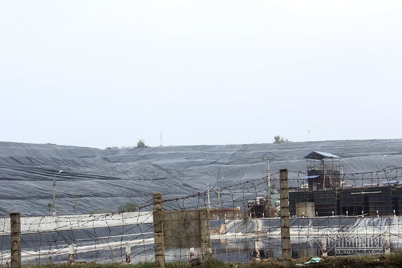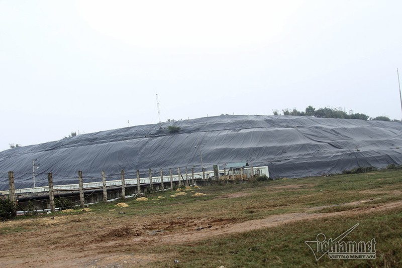 Toàn cảnh khu liên hiệp xử lý rác. Đâylà khu vực rộng lớn, rác được chất cao như núi và được phủ bạt kín mít |
