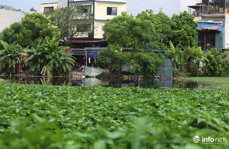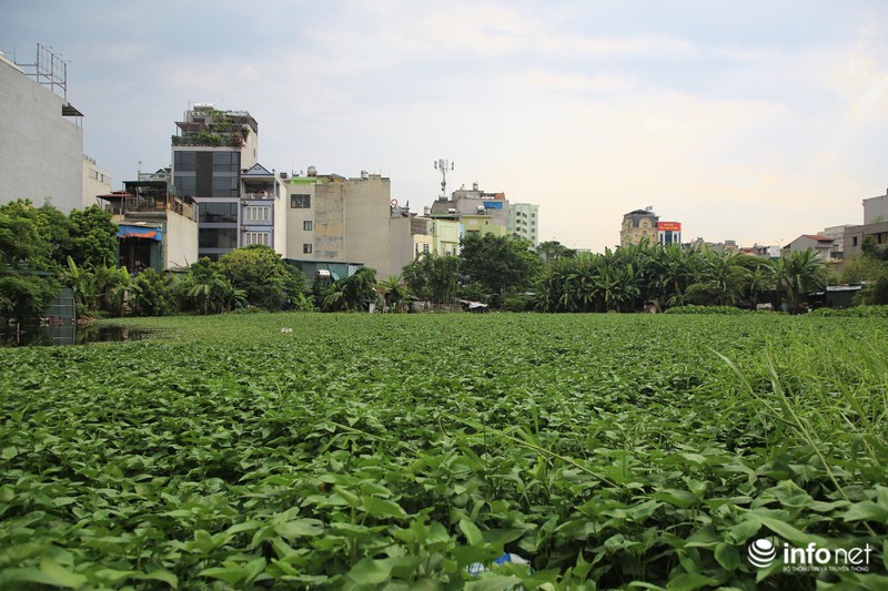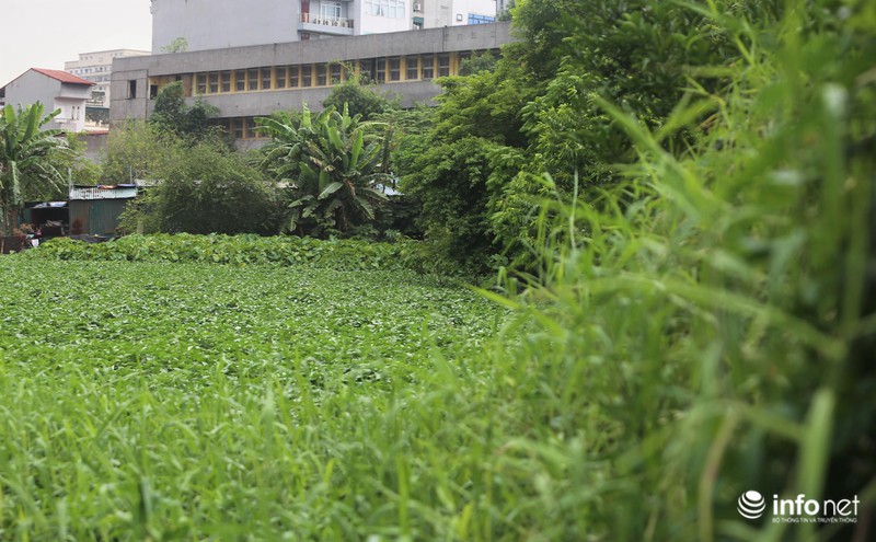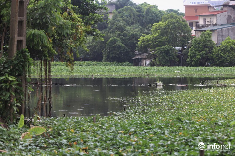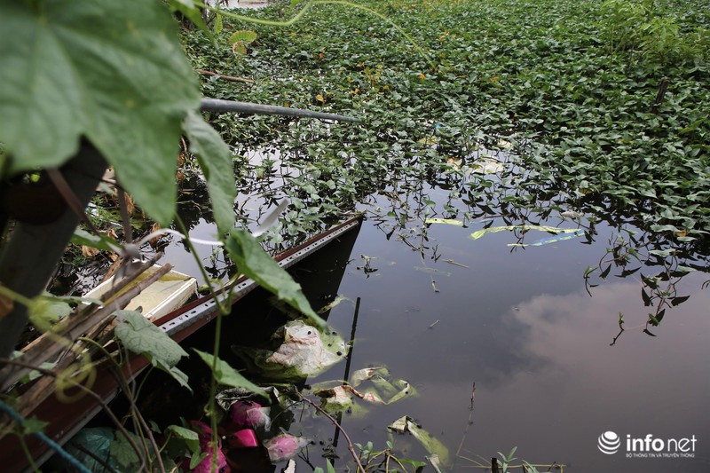 Theo ghi nhận của PV Infonet, nước hồ có màu đen ngòm, bốc mùi hôi thối, mặt hồ bị rác thải, các loại rau và cỏ dại phủ kín mặt hồ. |
