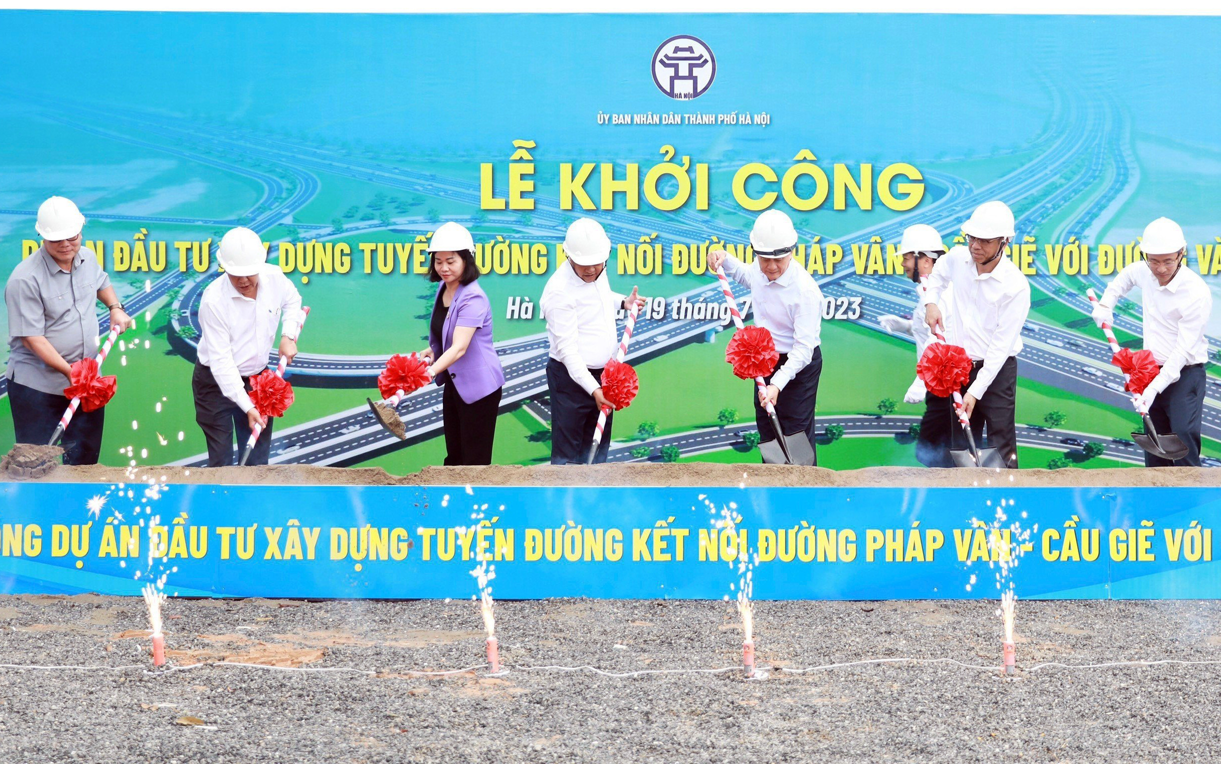 Sáng 19/7, TP Hà Nội khởi công dự án đầu tư xây dựng tuyến đường nối cao tốc Pháp Vân - Cầu Giẽ với Vành đai 3. Thời gian dự kiến thực hiện dự án từ nay đến năm 2025.