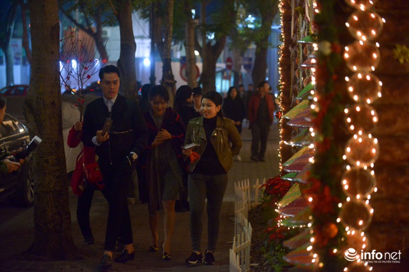 Chưa đến chính lễ Noel, tối 22/12, phố đi bộ Hoàn Kiếm đã chìm ngập trong biển người. |