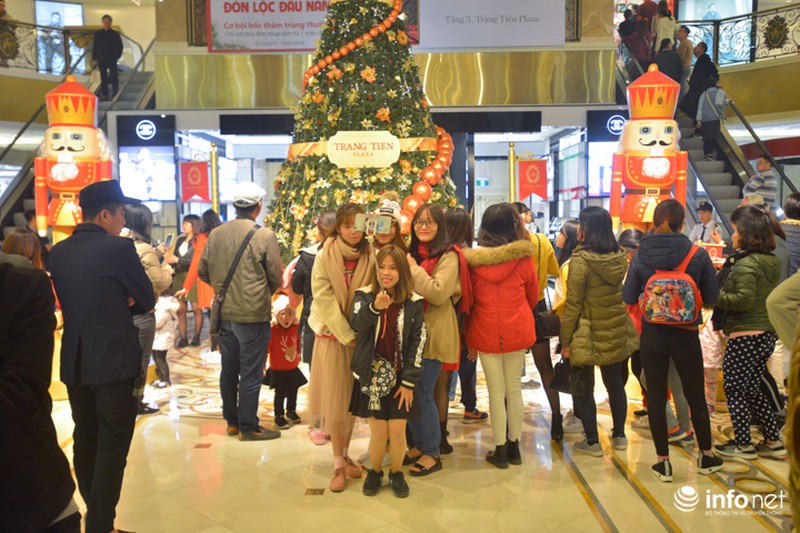 Khu vực trung tâm thương mại Tràng Tiền cũng lung linh hơn với những màu sắc đặc trưng của ngày lễ Giáng sinh. |