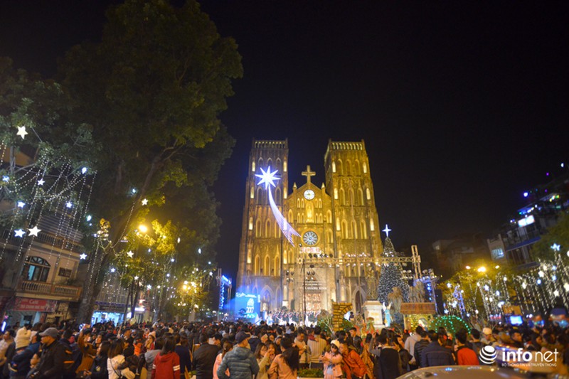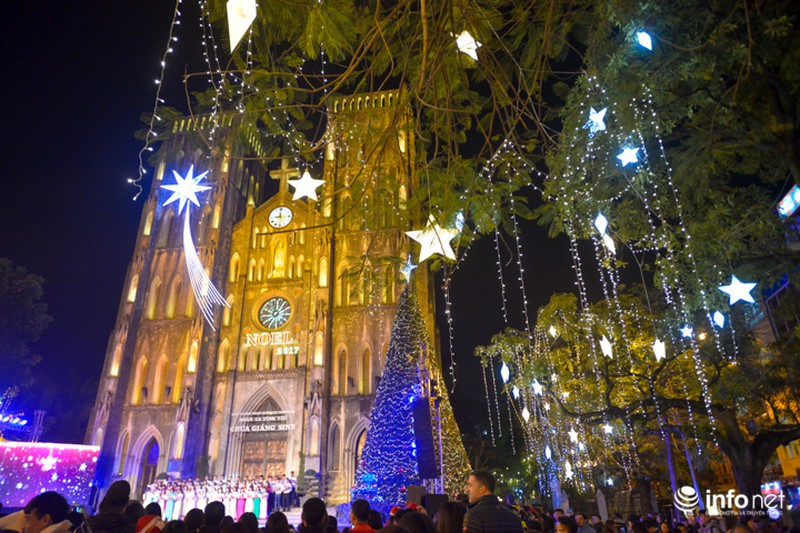 Khu vực Nhà thờ lớn Hà Nội là nơi được trang hoàng đẹp nhất với ánh đèn phủ khắp bốn bề. |
