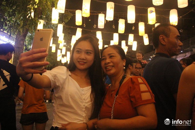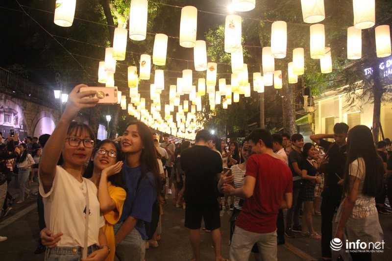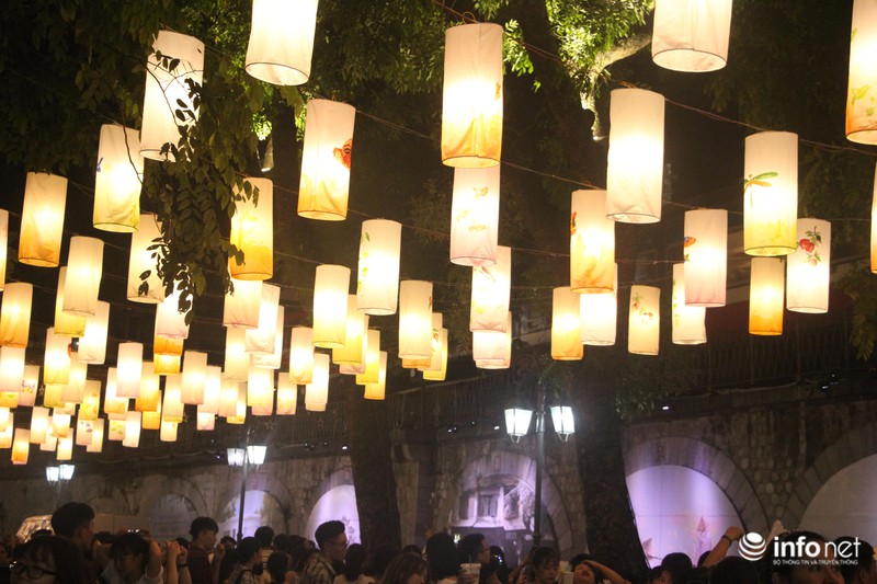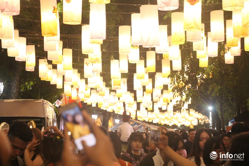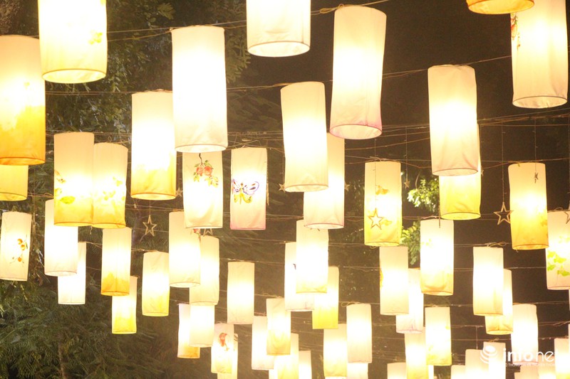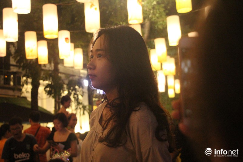 Rất nhiều bạn trẻ hào hứng chụp ảnh, check-in với những chiếc đèn lồng treo cao. |