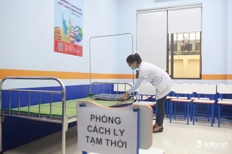 "Đối với những học sinh có biểu hiện ốm, sốt nhà trường cũng chuẩn bị phòng cách ly tạm thời, thông báo tới phụ huynh và phối hợp với các cơ quan, ban ngành để xử lý mọi tình huống theo đúng quy định của nhà nước", bà Đỗ Thị Bảy nói. |