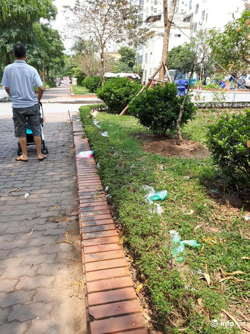 Thậm chí, nhiều vỉa hè, sân chơi các tòa chung cư đều bị chiếm dụng để làm bãi đậu xe. Phía bên dưới các tòa nhà, nhiều hàng quán, chợ cóc chiếm dụng lòng đường khiến giao thông đi lại của người dân rất khó khăn.