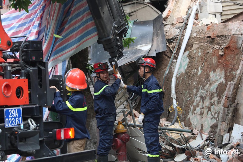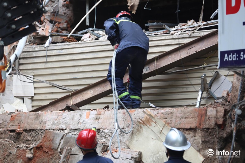 Lực lượng cảnh sát PCCC số 1- Công an TP Hà Nội đã được điều động đến hiện trường để xử lý đống đổ nát. |