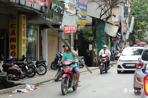 "Kỵ binh" trên phố Đê La Thành khiến nhiều người ai cũng phải... tránh xa. |