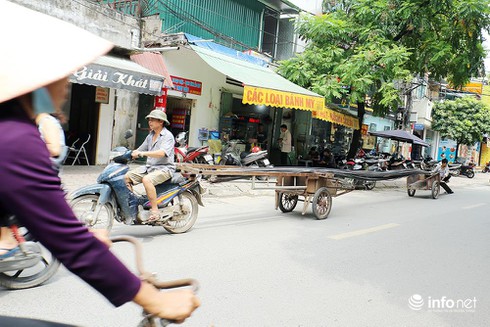 Ngoài các xe ba gác, xe mù, xe kéo... những chiếc xe thương binh cũng là nỗi ám ảnh với nhiều người đi đường. |