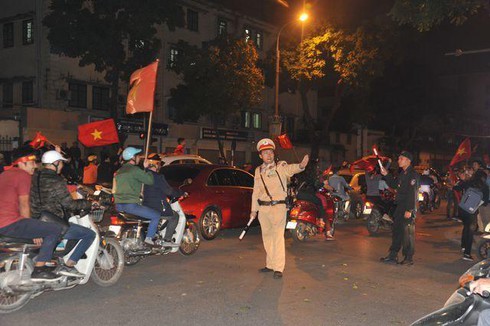 CSGT, CSCĐ hướng dẫn các cổ động viên ăn mừng chiến thắng của tuyển Việt Nam |