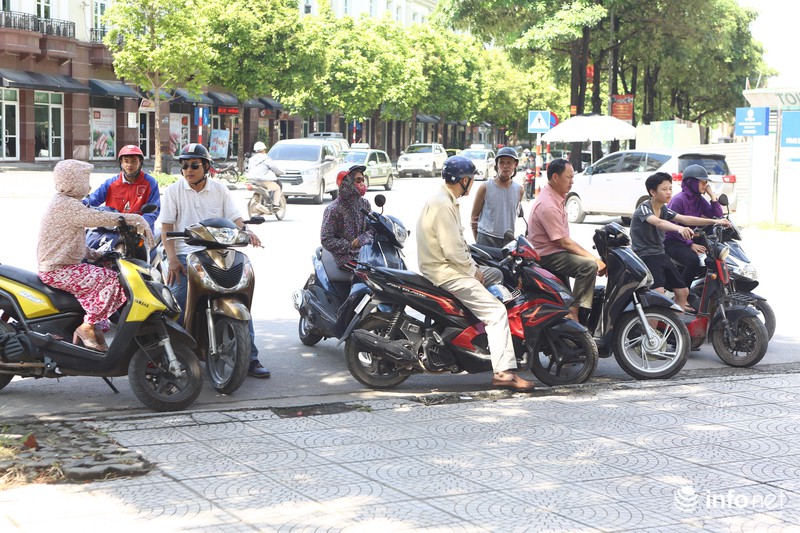 Nhiều phụ huynh chờ con ngay trên xe máy tại cổng trường