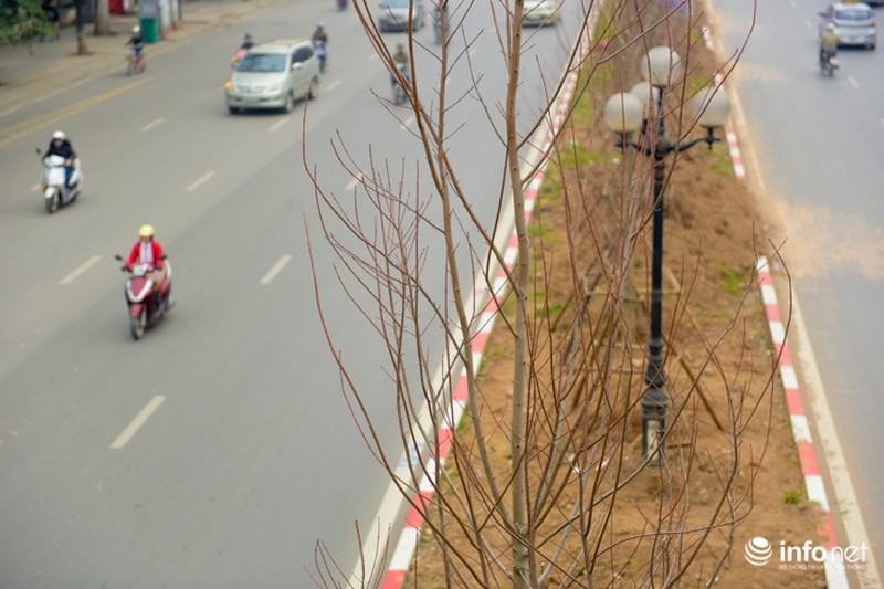 Hiện hàng cây phong lá đỏ đã được trồng ở dải phân cách giữa của tuyến đường đã từng được mệnh danh đẹp nhất Việt Nam, đường Nguyễn Chí Thanh, mỗi cây cách nhau khoảng 3m. |