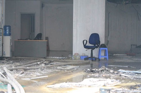 Theo nghi nhận tại hiện trường, toàn bộ đồ đạc trên tầng 2 showroom đã bị thiêu rụi, tấm biển quảng cáo cháy nham nhở. Rất may không có thiệt hại về người.