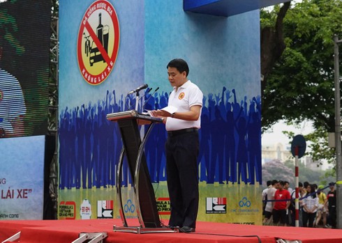 Sáng nay (12/5), tại sự kiện đi bộ kêu gọi hành động “Đã uống rượu bia - Không lái xe” do Ủy ban ATGT Quốc gia phối hợp với UBND thành phố Hà Nội cùng các đơn vị đồng hành tổ chức tại Hồ Gươm, Chủ tịch UBND TP Hà Nội Nguyễn Đức Chung đề nghị các sở, ban, ngành, tổ chức chính trị - xã hội, chính quyền các cấp cần bám sát chủ đề “Đã uống rượu bia - Không lái xe”; “Phải đội mũ bảo hiểm khi điều khiển xe gắn máy” và “phải thắt dây an toàn khi ngồi trên ô tô” để xây dựng chương trình, kế hoạch hành động cụ thể nhằm tạo được sự vào cuộc mạnh mẽ, tích cực, đồng bộ của cả hệ thống chính trị, của nhân dân, trong đó, có gắn trách nhiệm cao nhất của người đứng đầu các cơ quan, đơn vị trong việc đảm bảo TTATGT, giảm thiểu tai nạn giao thông trên địa bàn Thành phố.