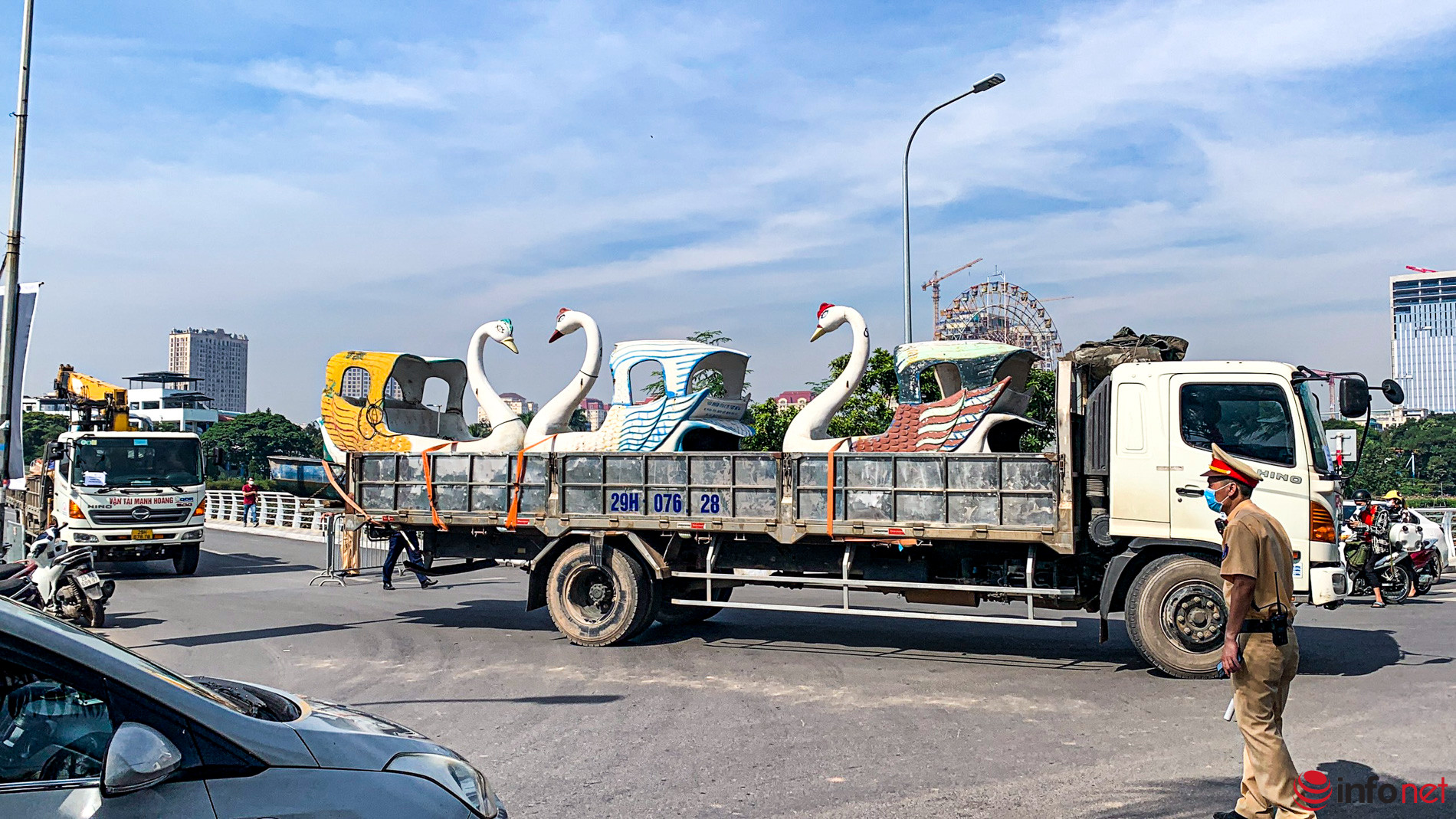 “Chúng tôi chia thành ba đợt để tháo dỡ các thuyền trên hồ Tây, hôm nay chỉ là di chuyển những thuyền nhỏ như: 15 con vịt nước, phao nổi và chòi nổi. Trong năm 2022, chúng tôi thực hiện tháo dỡ tất cả các thuyền trên bờ mặt hồ Tây”, ông Khuyến cho hay.