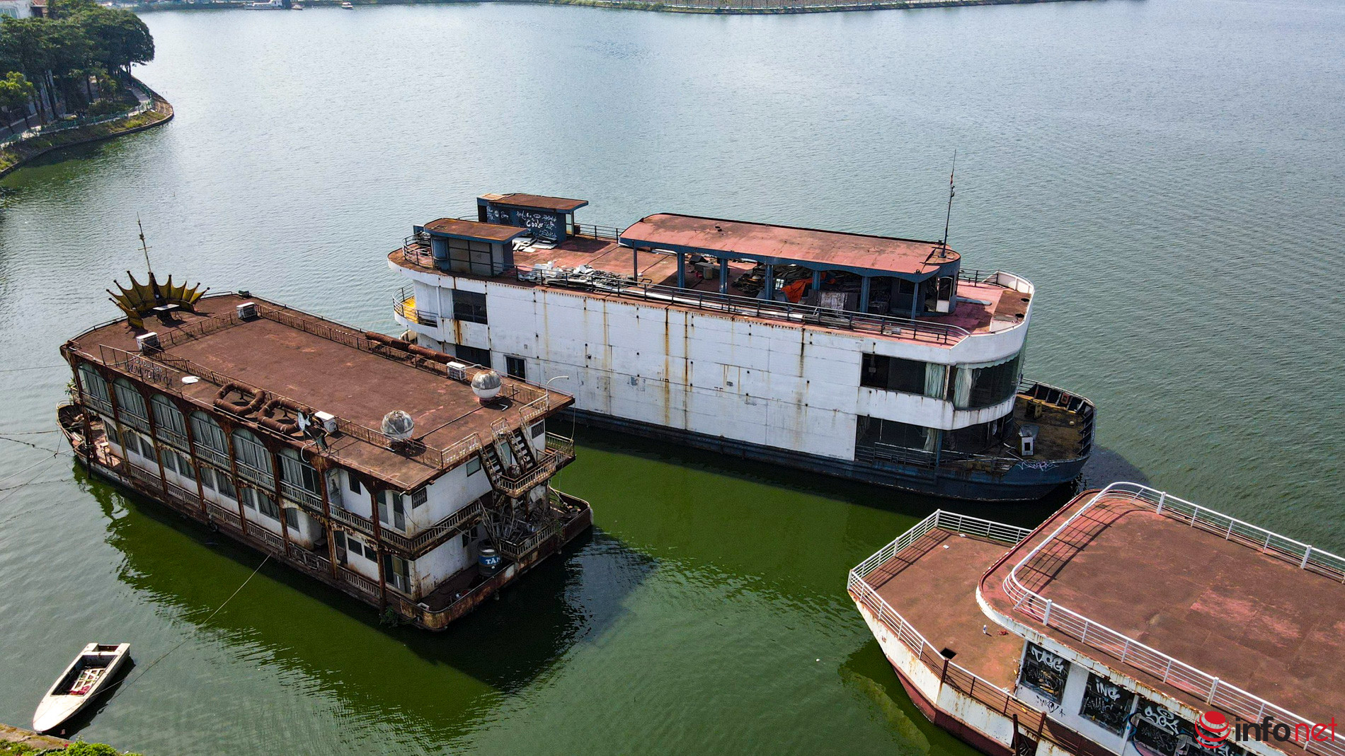 Từng là một trong những khu vực xa hoa, sầm uất nhất Thủ đô, sau thời gian nằm phơi mưa gió mục nát chờ xử lý, những du thuyền, nhà hàng nổi vô tình tạo nên "nghĩa địa sắt vụn" mạn hồ Tây.