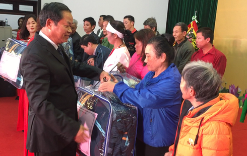 Phó Chủ tịch Quốc hội Đỗ Bá Tỵ tặng quà cho người dân tộc nghèo của TP Hà Nội. |