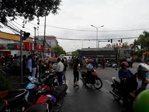 Cú va chạm khiến người phụ nữ điều khiển xe máy ngã ra đường tử vong tại chỗ. Chiếc xe máy bị xe tải kéo lê đoạn ngắn.