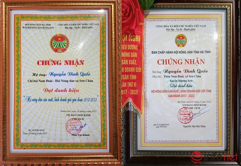 “Nguyễn Đình Quốc không chỉ là điển hình ở xã Sơn Châu mà là gương sáng về phát triển kinh tế ở huyện Hương Sơn. Vừa qua, anh được Hội Nông dân tỉnh Hà Tĩnh vinh danh là hộ gia đình sản xuất kinh doanh giỏi cấp tỉnh giai đoạn 2017 - 2022”, lãnh đạo xã Sơn Châu chia sẻ.