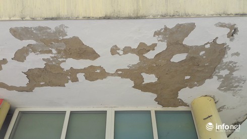 Do tòa nhà được xây dựng từ nhiều năm nên đã xuống cấp, hư hỏng nghiêm trọng. Phần trần trước sảnh đã bị bong tróc loang lỗ, vứa trát trần rơi rụng từng mảng lớn. Bờ tường khu vực cầu thang lên đã bị nứt nẻ, dột nát rêu phong. Khu vực vệ sinh cũng xuống cấp, hư hại khá nặng nề.
