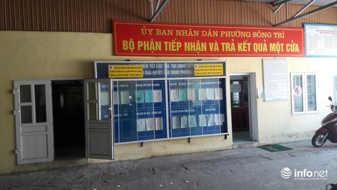 Đáng chú ý, diện tích chật chội, phòng ốc không có nên phòng giao dịch một cửa của phường Sông Trí phải tận dụng từ hành lang cánh gà với chiều rộng khoảng 2,5m, dài khoảng gần 10m. Khoảng cách từ sân lên đến mặt nền phòng làm việc chỉ khoảng hơn 10cm, nên rất chật chội, ẩm thấp, suốt ngày phải thắp điện.