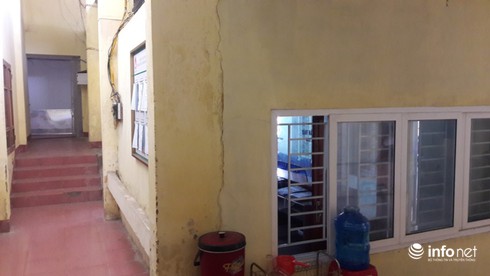 Do tận dụng cột trụ của Trung tâm Văn hóa làm góc tường, nên phòng làm việc đã xuất hiện nhiều vết nứt nẻ... |