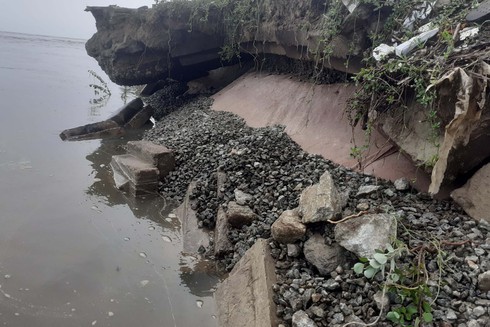 Đê biển Thịnh Lộc, huyện Lộc Hà, Hà Tĩnh bị sạt lở nghiêm trọng. |