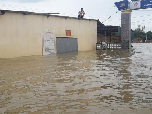 Trụ sở UBND xã Sơn Tiến bị ngập sâu suốt 3 ngày nay. Nếu muốn đến xã thì phải đi bằng thuyền. |