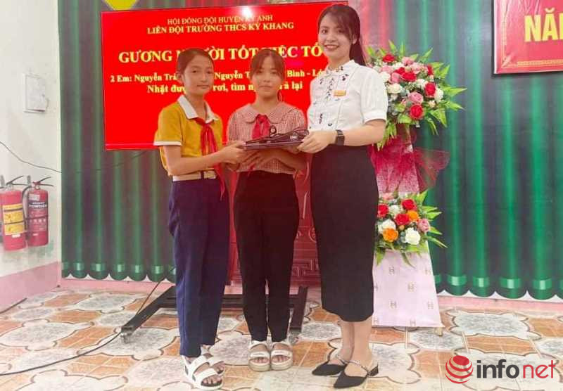 Thầy Nguyễn Quang Vinh, Hiệu trưởng trường THCS Kỳ Khang cho biết, do tính chất của công việc nên nhà trường đã bàn giao tài sản cho người đánh rơi. Sáng thứ 2 đầu tuần (26/9), nhà trường sẽ tổ chức tuyên dương dưới cờ và có thư khen đối với 2 em học sinh vì đã nhặt được của rơi trả người đánh mất.