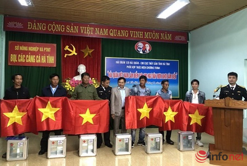 Cũng trong khuôn khổ chương trình “Hải quân Việt Nam làm điểm tựa cho ngư dân vươn khơi, bám biển”, Đoàn công tác Hải đoàn 128 Hải quân đã tổ chức khám chữa bệnh, cấp thuốc miễn phí cho hơn 100 người dân các xã thuộc huyện Lộc Hà; trao tặng cờ Tổ quốc, áo phao cứu sinh, tủ thuốc, tờ rơi tuyên truyền những điều cần biết khi khai thác thủy sản trên biển…