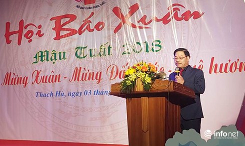 Chủ tịch Hội nhà báo Hà Tĩnh, ông Nguyễn Xuân Hải, đọc diễn văn khai mạc Hội báo Xuân Mậu Tuất 2018. |