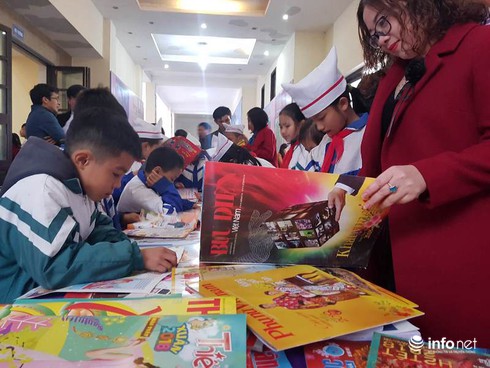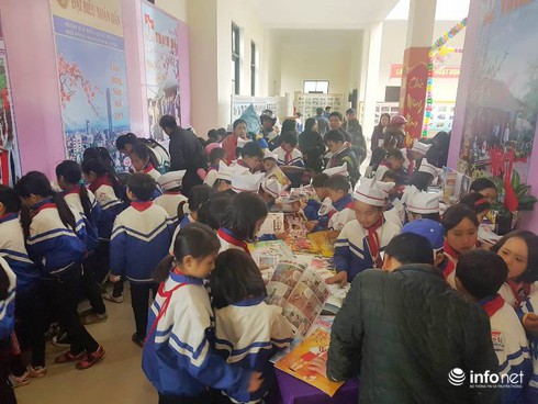 Các em học sinh tham quan lễ hội Báo xuân |