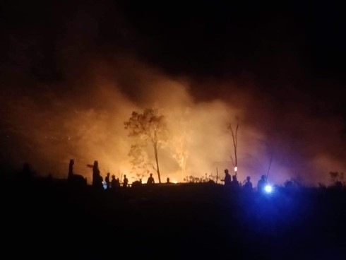 "Nhận được tin báo cháy, chính quyền xã huy động hàng trăm người dập lửa, trong đó có cán bộ, công chức. Chúng tôi phát loa kêu gọi toàn dân lên núi dập lửa nên đến 23h40 ngọn lửa đã được khống chế", ông Định nói.