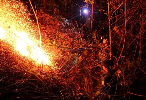 Do thực bì quá dày, gió thổi mạnh nên đám cháy lan rộng và nhanh trong đêm. |