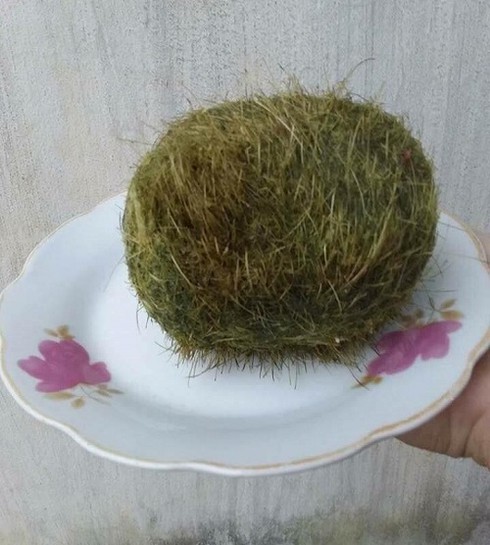 Theo chủ nhà cho biết, vật lạ nghi cát lợn có màu xanh và đen vàng, xung quanh có lông, có mùi thơm thoang thoảng giống như thuốc Bắc.