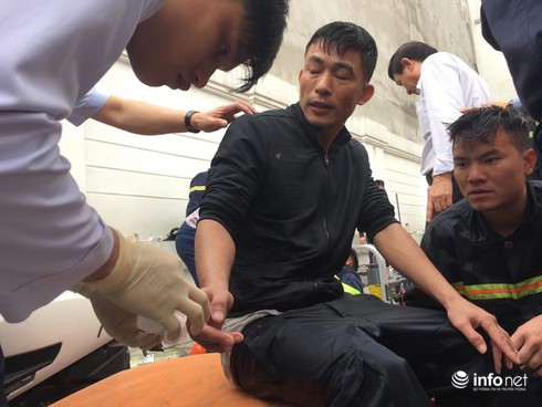 Trong lúc khoan cắt tường để tiếp cận đám cháy, Thường úy Điệp đã bị đứt lìa ngón tay. |