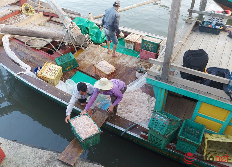 Ngư dân Nguyễn Xuân Tiến cho biết, nhờ thời tiết thuận lợi nên các luồng ruốc biển xuất hiện dày đặc. Vì thế, tàu thuyền không phải đi quá xa, chỉ cần ra cách bờ 500m là có thể khai thác được. Sau 2 ngày đánh bắt, tàu của chúng tôi đã mang về 4 tấn hàng, chủ yếu là ruốc biển.