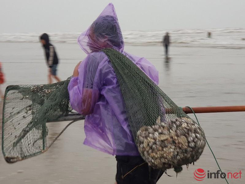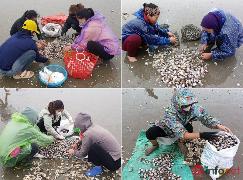 Cũng theo chị Hoa, những ngày này người dân trong vùng không ai dám ngủ, họ thức cả đêm để canh đi vớt sò bởi không phải lúc nào cũng có. Nhà nào đông người, có sức khoẻ, ra được ngoài sâu thì cào được cả tấn, thu nhập cả chục triệu đồng. Sau khi làm sạch xong, thương lái đánh xe ra tận bờ biển để mua, ban đầu sò bán 10.000 đồng/1kg nhưng sau đó do người dân bắt được nhiều nên giảm xuống còn 9.000 rồi 8.000 đồng/1 kg.