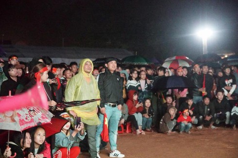 Mặc dù thời tiết đêm qua không mấy thuận lợi, trời bắt đầu mưa nặng hạt, rét buốt, tuy nhiên bà con vẫn không rời sân. Người che ô, người mặc áo mưa, người đội mũ... che tạm. Nhưng lúc này, những hạt mưa không còn làm ảnh hưởng đến tinh thần cổ vũ của người hâm mộ. Họ như cháy hết mình với các cầu thủ trên sân cỏ.