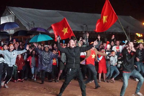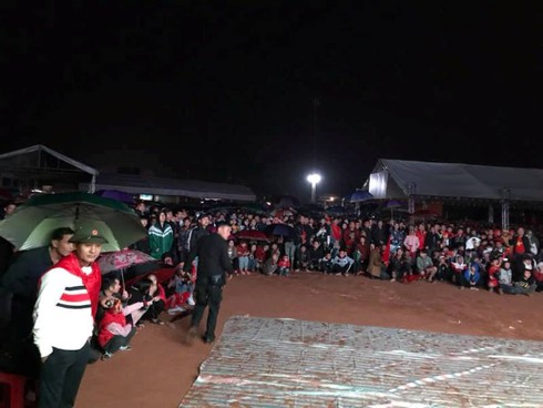Khán giả Hương Sơn “đội mưa” cổ vũ cho đội tuyển Việt Nam giành chiến thắng |