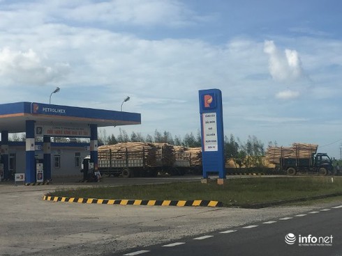 Do chờ qáu lâu để được đến lượt cân, một số lái xe cho xe dừng tại cây xăng ngay cạnh nhà máy chế biến gỗ. |