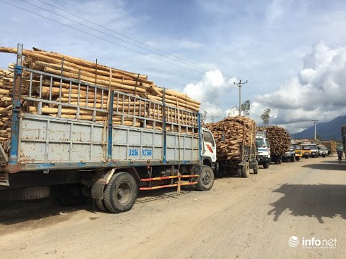 Theo ông Tý, một chủ xe tại Đồng Lê (Quảng Bình), giá bên nhà máy Quảng Bình mua thấp hơn nên chúng tôi phải chở sang đây. Giờ sang đây phải chờ 4-5 ngày mà vẫn chưa cân được; tràm, keo gặp nắng nóng là khô queo nên giảm cân, hao hụt tiền.