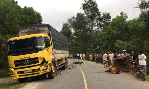 Cú tông mạnh khiến chiếc xe máy vỡ nát, văng xa ra phía trước. Chiếc xe cải tiến bị lật nghiêng bên đường, con bò chết tại chỗ. Anh Hòa bị thương nặng, được người dân đưa đi bệnh viện cấp cứu.