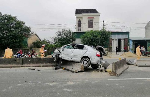 Vào thời điểm này, chiếc xe ô tô vios BKS 38A-01915 (chưa rõ người điều khiển) chạy từ phía sau lên để vượt, nên bị chiếc xe container kẹp vào dải phân cách cứng.