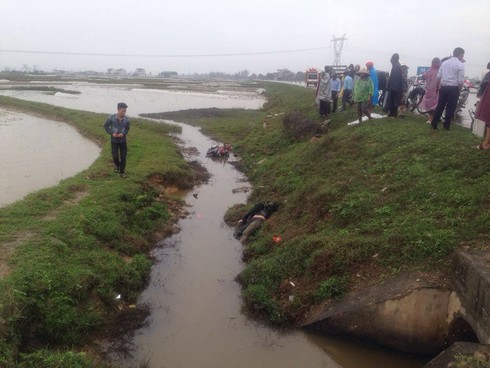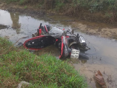 Tại hiện trường, thi thể nạn nhân nằm một bên mương nước,chiếc xe máy bị va đập hư hỏng nặng cách nạn nhân khoảng 15m.