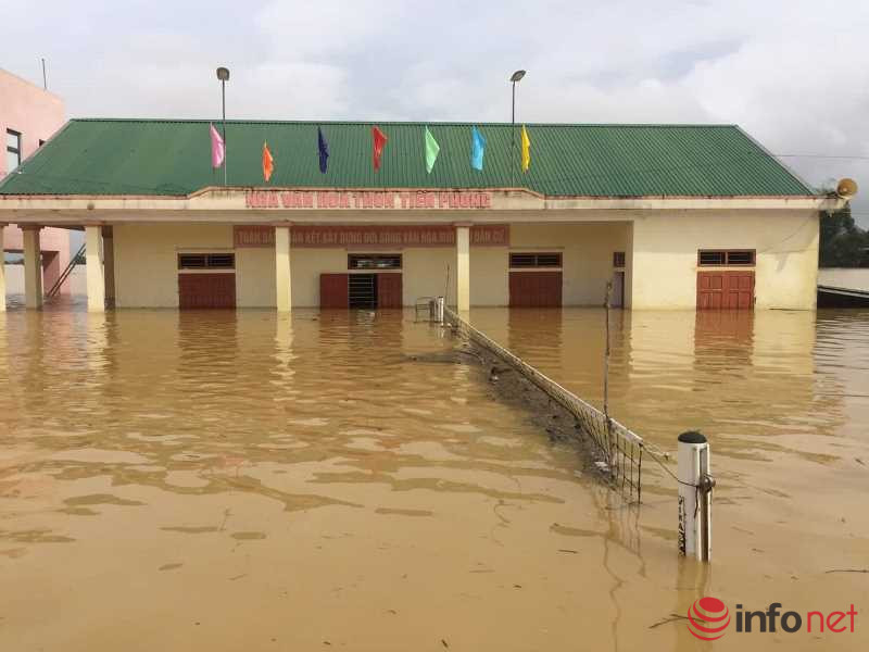 Nước từ thượng nguồn đổ về cũng khiến thôn Tiền Phong (xã Quang Vĩnh, huyện Đức Thọ bị nhấn chìm. Thông tin từ cán bộ thôn Tiền Phong cho biết, toàn thôn có 89 hộ dân thì đã bị ngập trên 30%, trong đó hộ ngập sâu nhất khoảng 1m, hộ ngập cạn cũng 40cm. Theo đà này, đến chiều tối nay (30/9) thì toàn thôn sẽ bị nhấn chìm.
