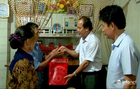 Lãnh đạo thị xã Kỳ Anh thăm và tặng quà động viên cho những gia đình chính sách. |